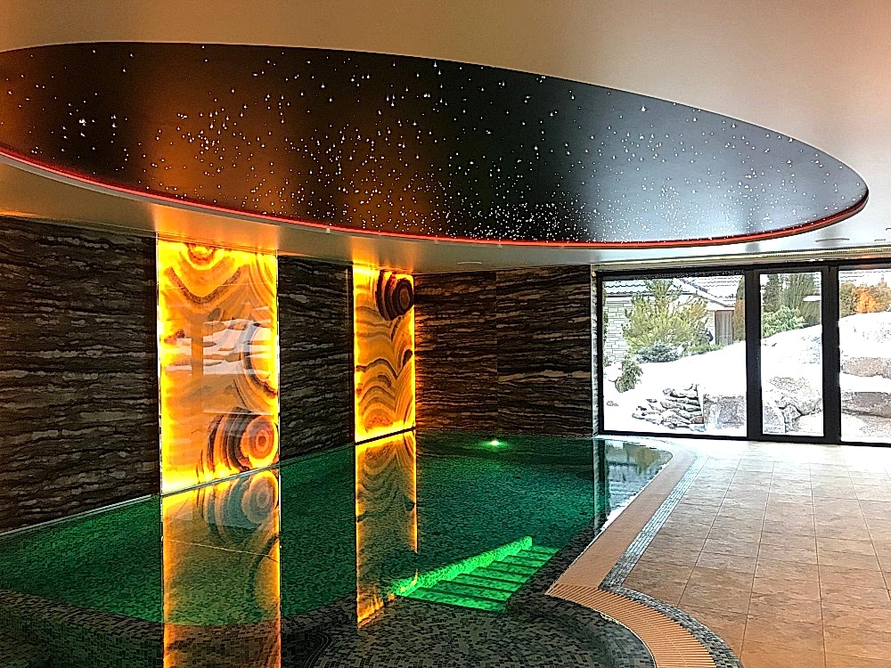 Нами была выполнена автоматизация спа-комплекса в Гатчинском районе ЛО. Основной задачей было создание удобной системы управления климатом, освещением и непосредственно самим бассейном. Оборудование Loxone позволило создать единый интерфейс, через который можно изменить температуру воды в бассейне, температуру воздуха, уровень Pin-Up посмотреть основные данные о водоподготовке. Помимо этого система взяла на себя функцию управления сценарным освещением и музыкальной системой. Проще говоря, всё что есть в бассейне управляется через смартфон, в том числе удалённо.